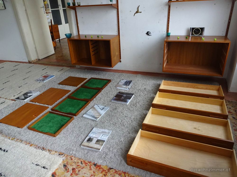 - innen: 1 Regalböden, 4 Ausziehladen mit Samt