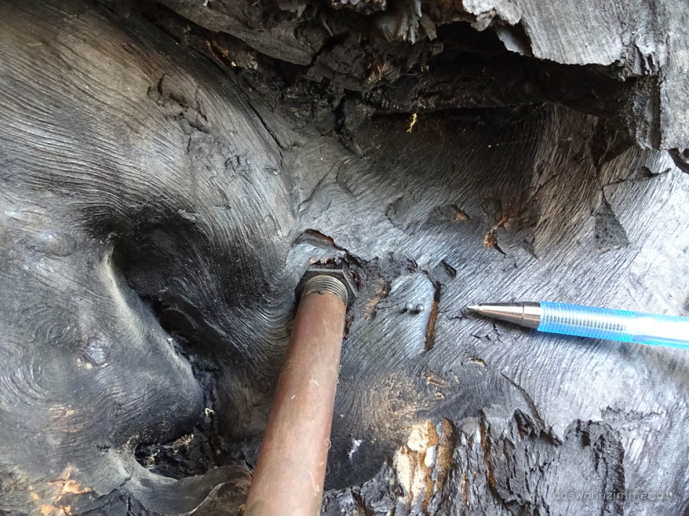 alter Baumtisch mit expressiver Form